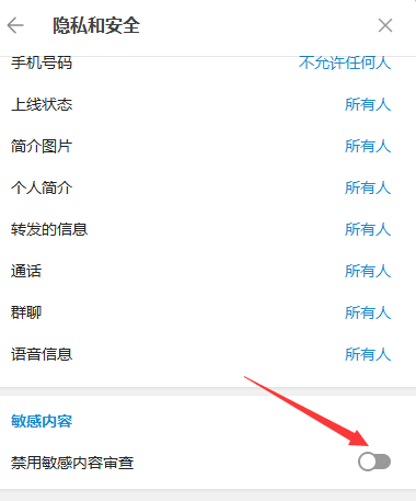 电报如何解除敏感?